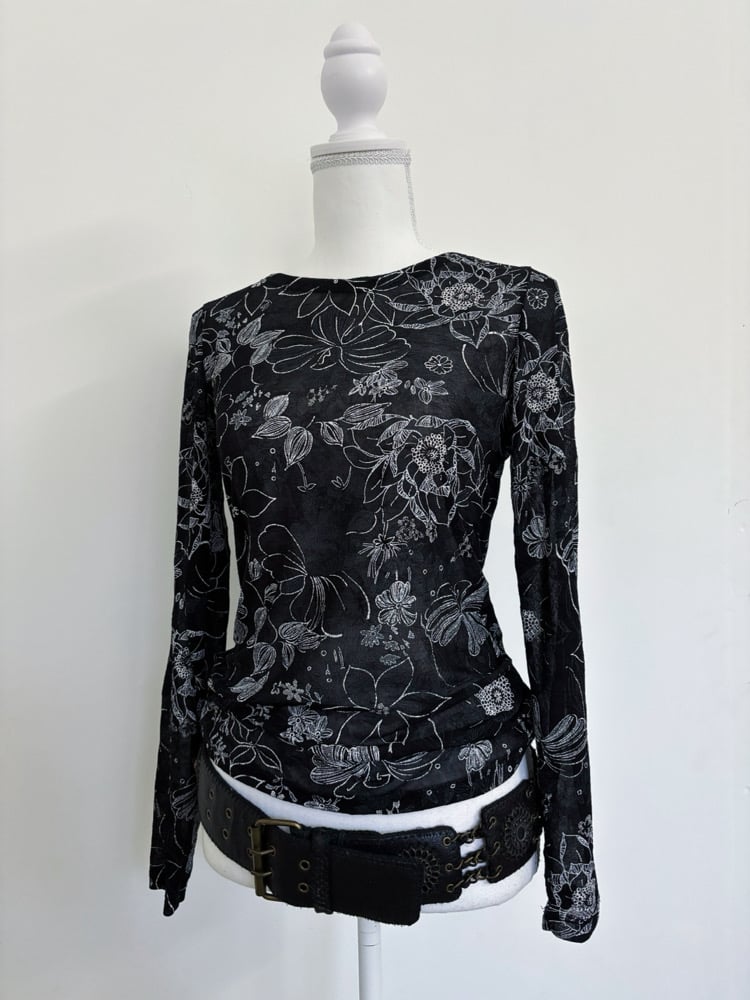 00s Black floral top // M